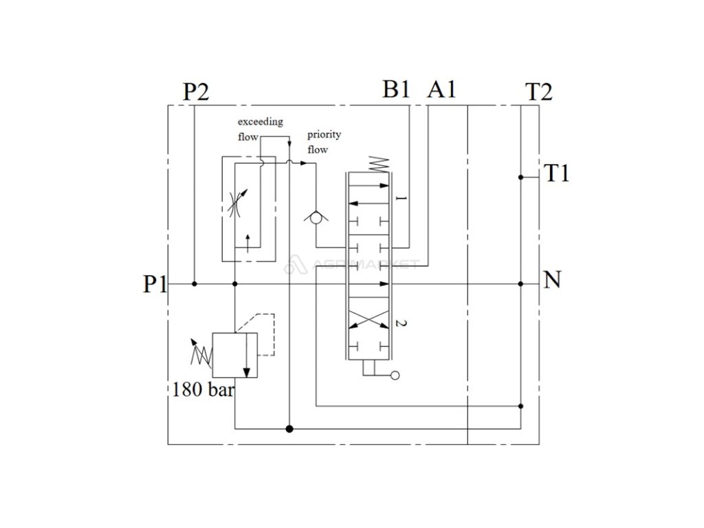 Rozdělovač s regulátorem průtoku určený pro různé druhy strojů, jako jsou: zemědělské stroje, traktory,