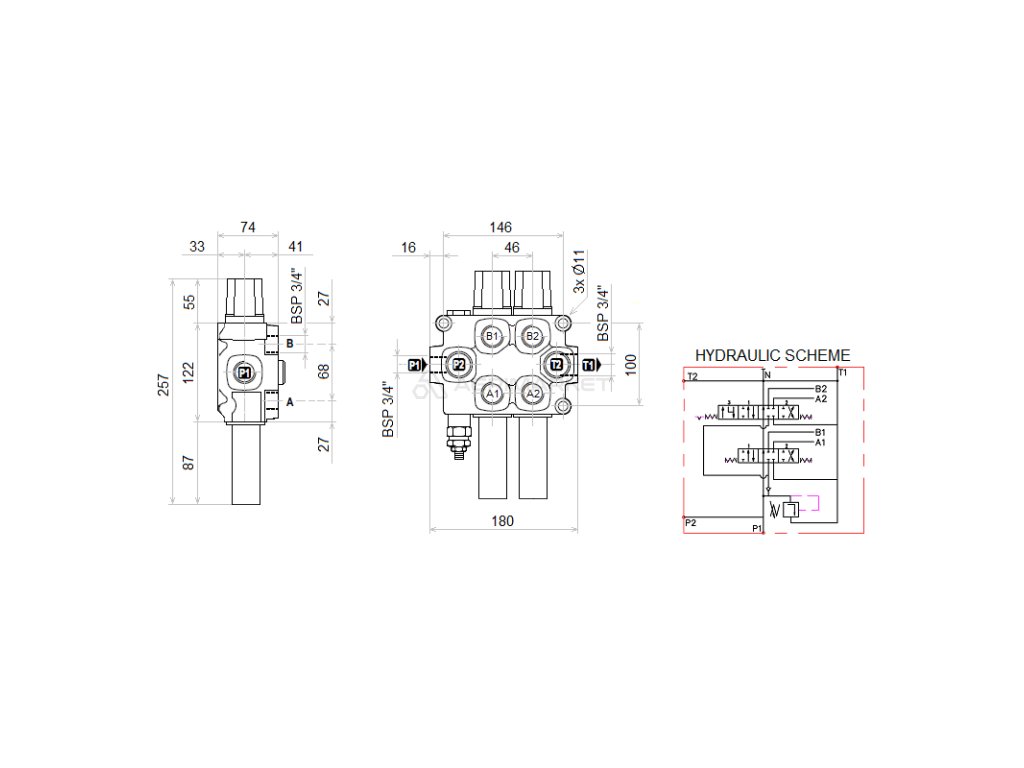 2sekce hydraulick sada: 120L rozvaděč s plovoucí sekce + joystick s jedním tlačítkem + dva 3m kabely