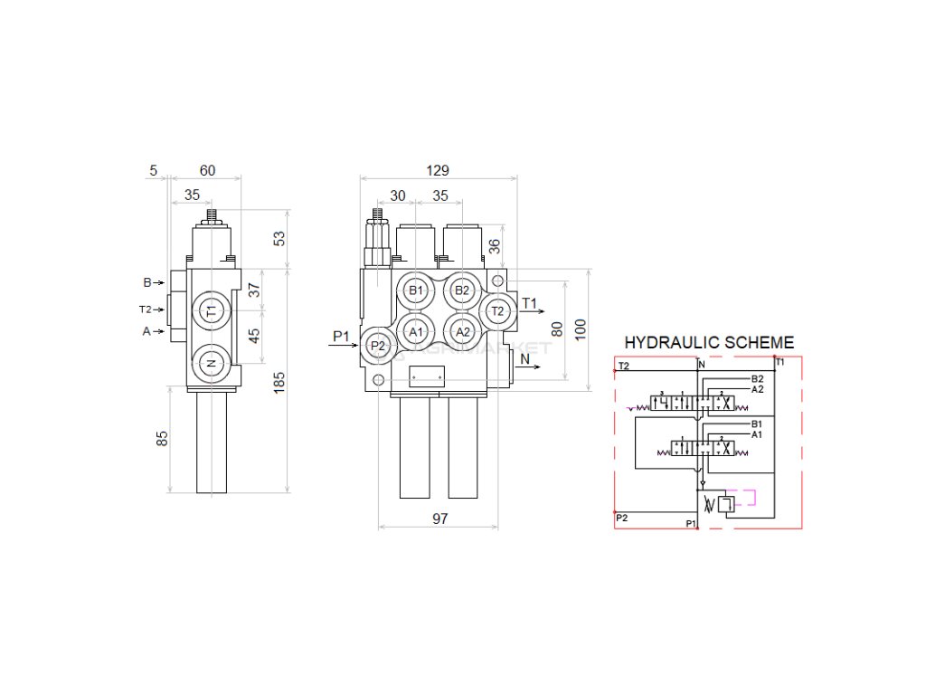 Uzpůsobeno pro traktory a stroje s otevřeným hydraulickým systémem. Otevřený systém se vyznačuje tím, že při nastartování motoru se aktivuje hydraulické čerpadlo a hydraulický rozdělovač, když se nepoužívá, volně proudí olej z čerpadla směrem k nádrži. Čerpadlo běží volně a olej cirkuluje mezi čerpadlem rozdělovače a nádrží pod nízkým tlakem. |