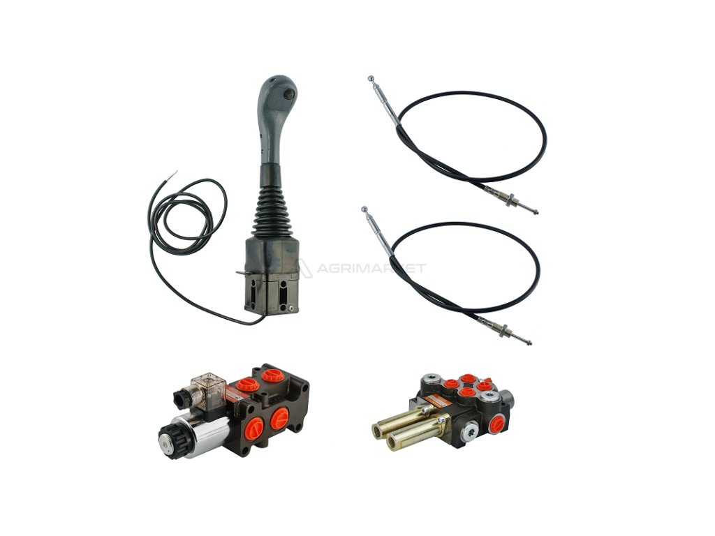 3sekce hydraulick sada: 40L rozvaděč + 6/2 elektromagnetickě ventil + joystick s jedním tlačítkem + dva 2,5m kabely