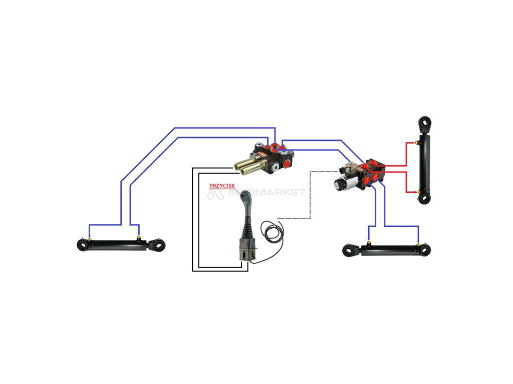 3sekce hydraulick sada: 40L rozvaděč s plovoucí sekce + 6/2 elektromagnetickě ventil + joystick s jedním tlačítkem + dva 3m kabely