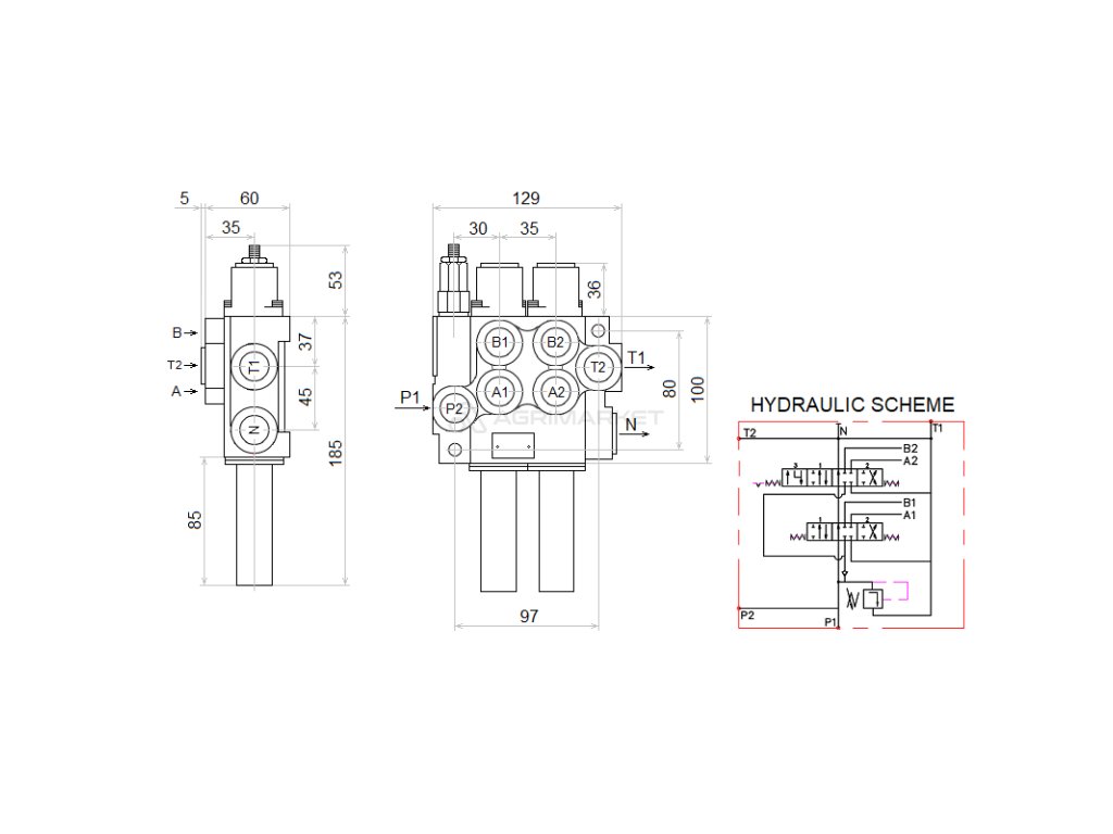 Vhodné pro traktory a stroje s otevřeným hydraulickým systémem. Otevřený systém se vyznačuje tím, že hydraulické čerpadlo se aktivuje při nastartování motoru a hydraulický rozdělovač, když se nepoužívá, umožňuje oleji volně proudit z čerpadla směrem k nádrži. Čerpadlo pracuje volně a olej cirkuluje mezi čerpadlem rozdělovače a nádrží pod nízkým tlakem. Ideální pro ovládání tří sekcí v zatáčce, zvedání rámu, sklon lopaty a krokodýla nebo drapáku, v traktorech, kde kapacita hydraulického čerpadla nepřesahuje 40 l/min, včetně: Ursus C-330, C-360, C-385 , 912, 914, 1224, 2812, 3512 Zetor 5211, 7211, 5245, 7245, 8011 MF 255 a další Plovoucí sekce, jinak volně tekoucí, používaná např. pro sněžné pluhy nebo čelní nakladače TUR. Způsobuje volný pohyb pístnice v hydraulických válcích, chrání před poškozením prvky, které mají přímý kontakt se zemí, např. radlice pluhu. |
