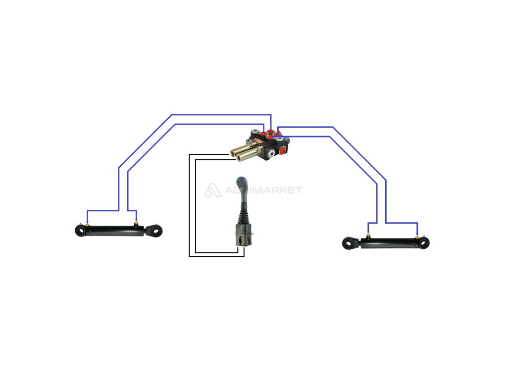 2sekce hydraulick sada 40L/min: Joystick bez tlačítka + 2x Kabel 2m + 2sek. rozvaděč 40L