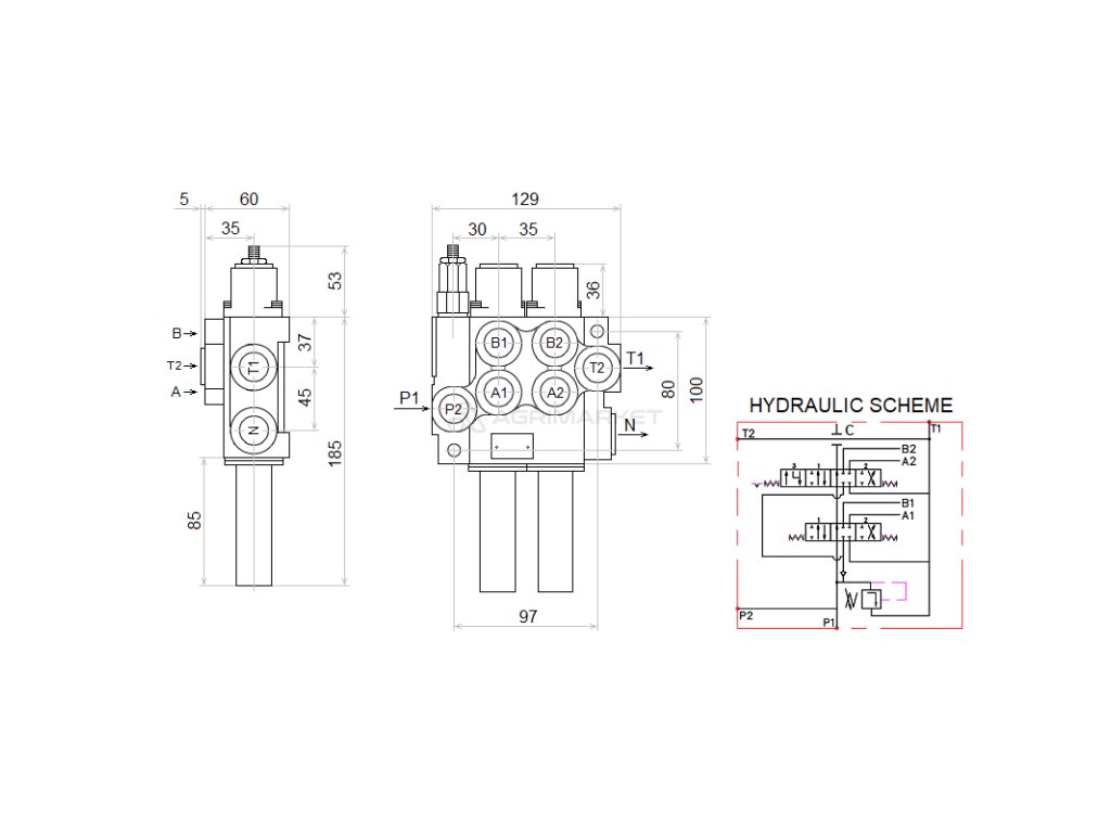| Aplikace: | Uzpůsobeno pro traktory a stroje s otevřeným hydraulickým systémem. Otevřený systém se vyznačuje tím, že při nastartování motoru se aktivuje hydraulické čerpadlo a hydraulický rozdělovač, když se nepoužívá, volně proudí olej z čerpadla směrem k nádrži. Čerpadlo běží volně a olej cirkuluje mezi čerpadlem rozdělovače a nádrží pod nízkým tlakem. |