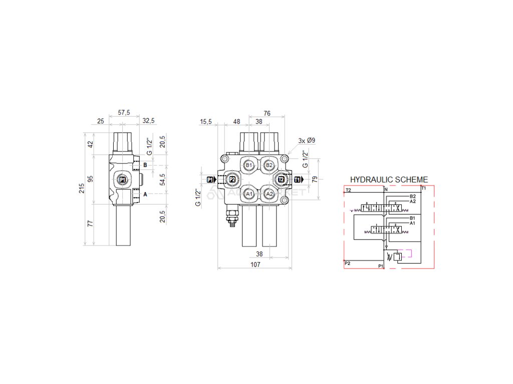 2sekce hydraulick sada: 60L rozvaděč s plovoucí sekce + joystick s jedním tlačítkem + dva 1m kabely