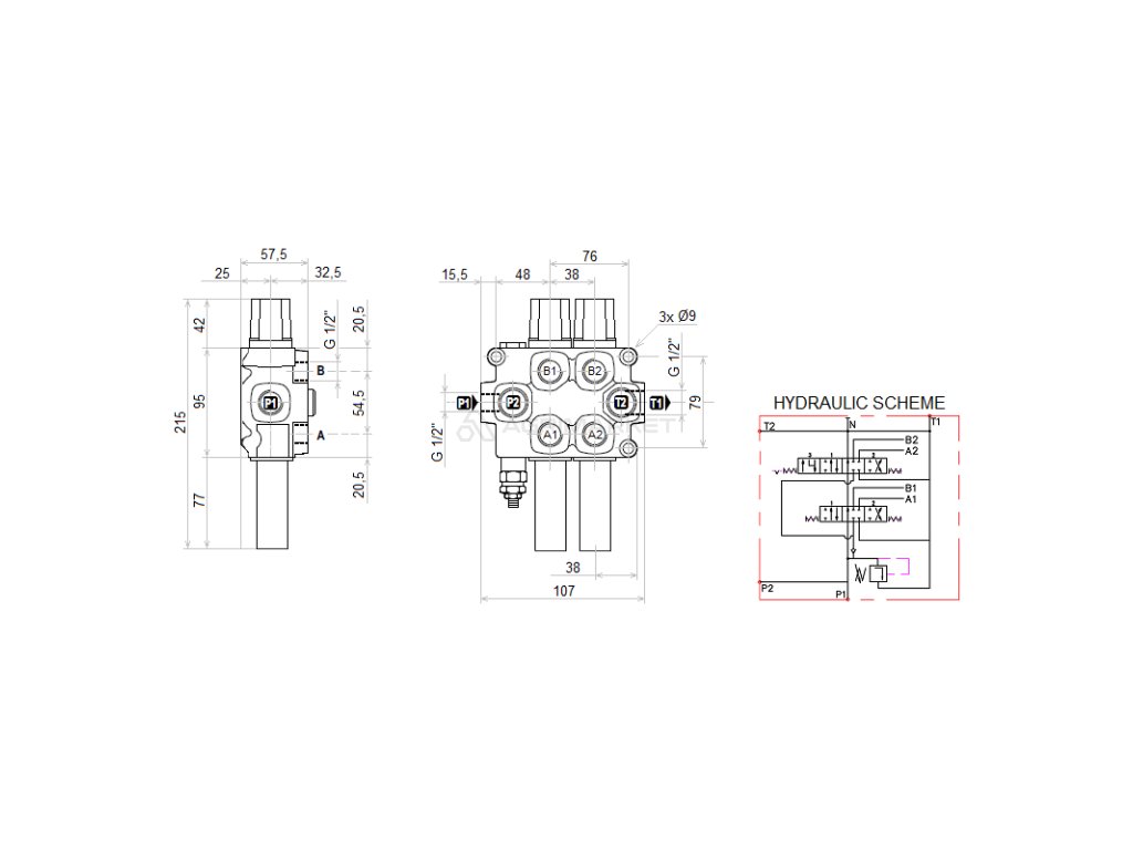 2sekce hydraulick sada: 60L rozvaděč s plovoucí sekce + joystick s jedním tlačítkem + dva 3m kabely