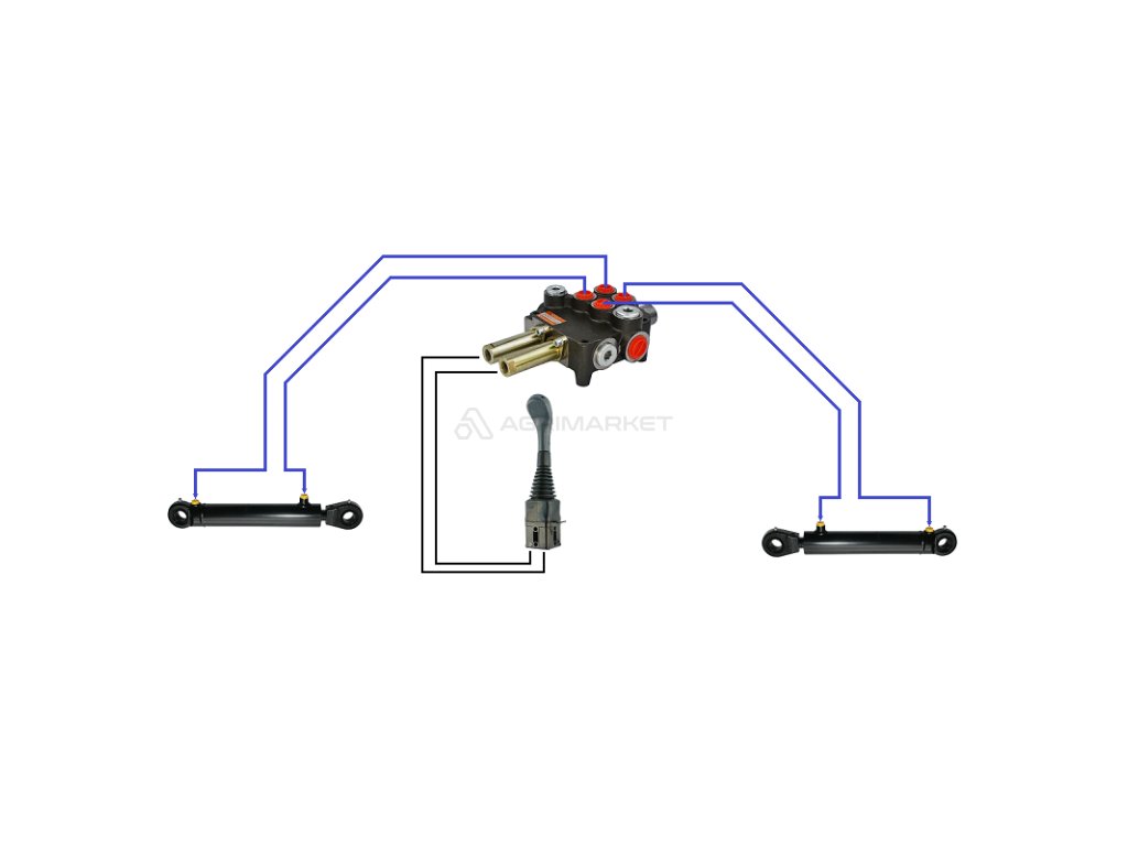 2sekce hydraulick sada: 80L rozvaděč s plovoucí sekce + joystick bez tlačítek + dva 1m kabely