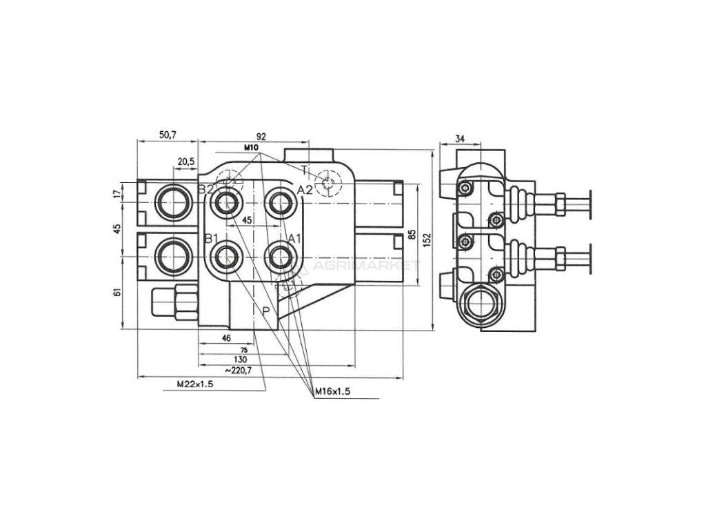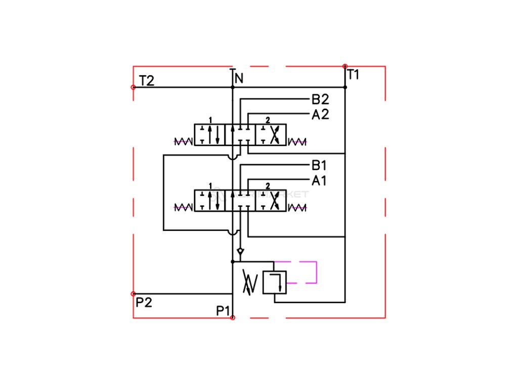 | Aplikace: | Určeno pro ovládání dvou přijímačů v hydraulickém systému, např. dvou dvojčinných válců nebo dvou motorů v obou směrech. |