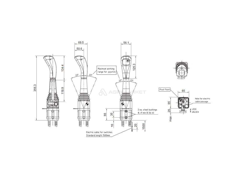 2sekce sada hydraulick‚ho joysticku 1 tlačítko + 2x kabely 1m + 2sekcerozvaděč 90l