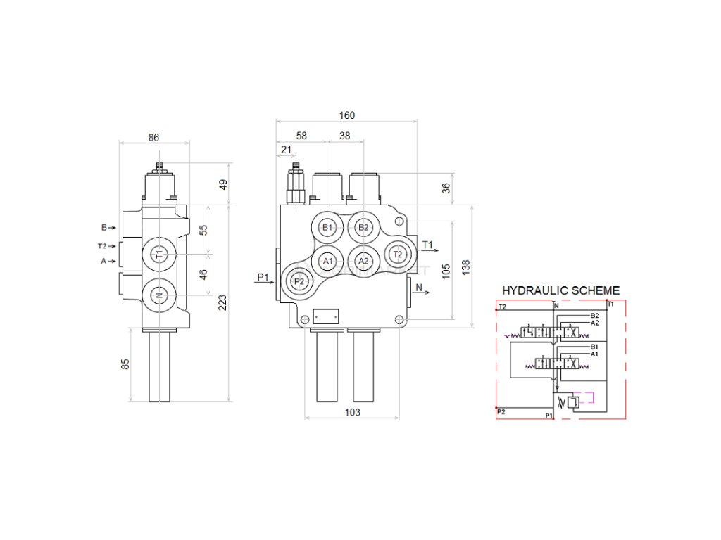2sekce hydraulick sada: 60L rozvaděč s plovoucí sekce + joystick s jedním tlačítkem + dva 2m kabely