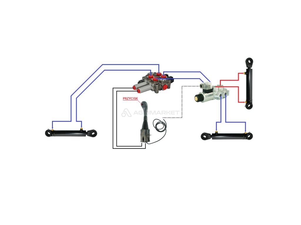 3sekce sada hydraulick‚ho joysticku 1 tlačítko + 2x 3m kabel + 2s rozvaděč 60l + elektroventil 6/2 pro třetí sekce (drap k, krokoděl)