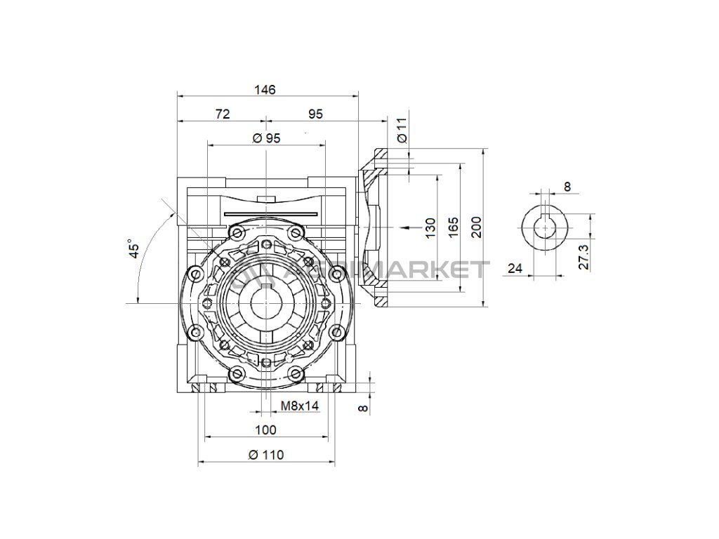 | Aplikace: | Používá se v různých typech průmyslových, zemědělských a lesnických strojů, mimo jiné k pohonu dřevoobráběcích strojů, tlakových myček, pohonů pásových dopravníků, šneků, výtahů a dalších. Používá se zaměnitelně s modely NMRV MOTOVARIO. |