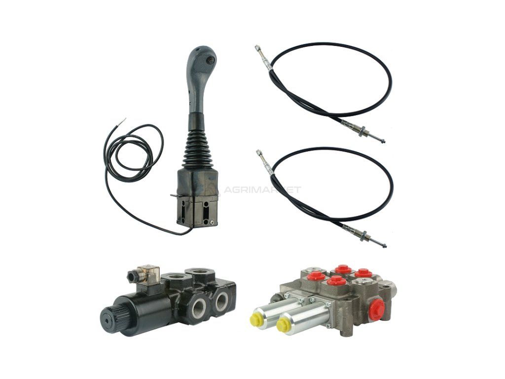 3sekce hydraulick sada 120L/min: Joystick 1 tlačítko + 2x 2,5m kabel + 2sek. rozvaděč 120L + Solenoidově ventil