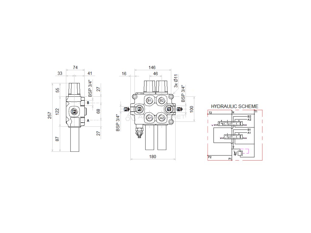 3sekce hydraulick sada: 120L rozvaděč s plovoucí ź stˇ + 6/2 elektromagnetickě ventil + joystick s jedním tlačítkem + dva 1m kabely