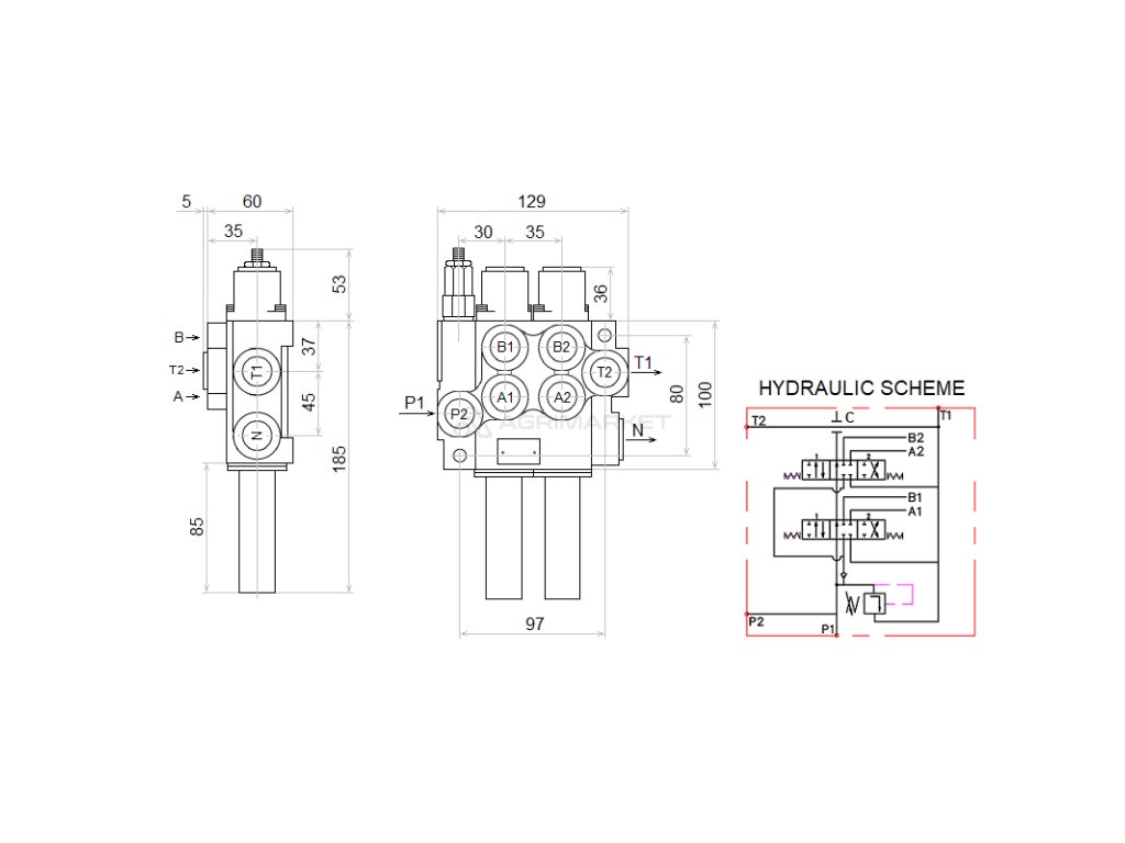 | Aplikace: | Uzpůsobeno pro traktory a stroje s otevřeným hydraulickým systémem. Otevřený systém se vyznačuje tím, že při nastartování motoru se aktivuje hydraulické čerpadlo a hydraulický rozdělovač, když se nepoužívá, volně proudí olej z čerpadla směrem k nádrži. Čerpadlo běží volně a olej cirkuluje mezi čerpadlem rozdělovače a nádrží pod nízkým tlakem. |