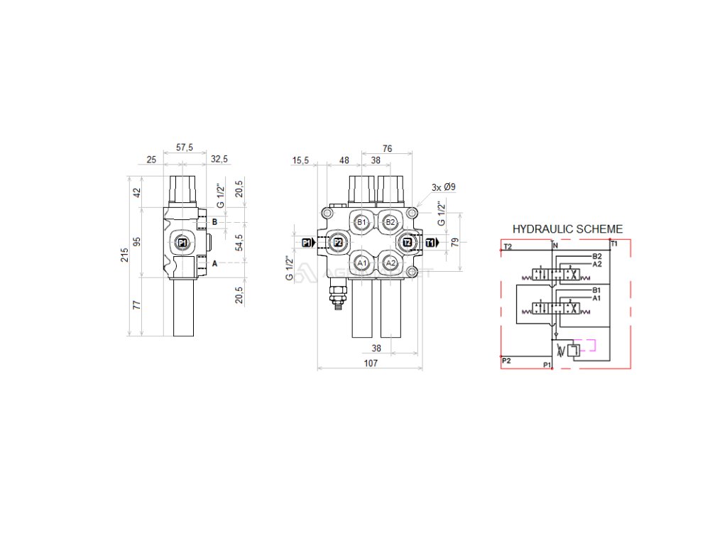 3sekce hydraulick sada: 60L rozvaděč + 6/2 elektromagnetickě ventil + joystick s jedním tlačítkem + dva 2,5m kabely