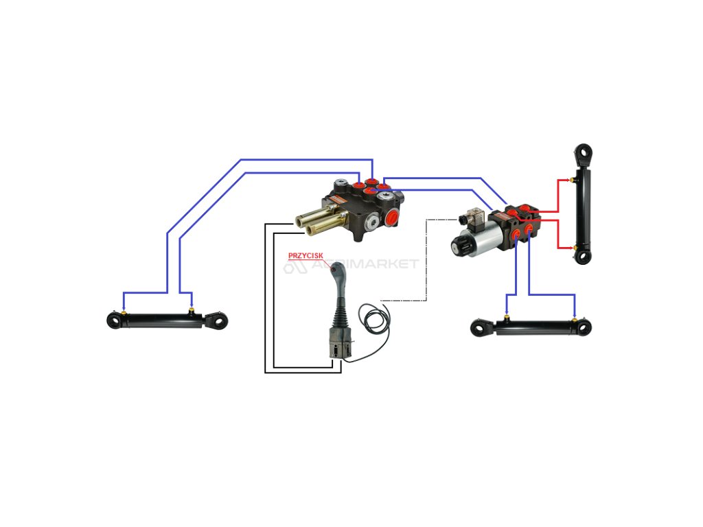 3sekce hydraulick sada 80L/min: Joystick 1 tlačítko + 2x Kabel 3m + 2sek. rozvaděč 80L + Solenoidově ventil