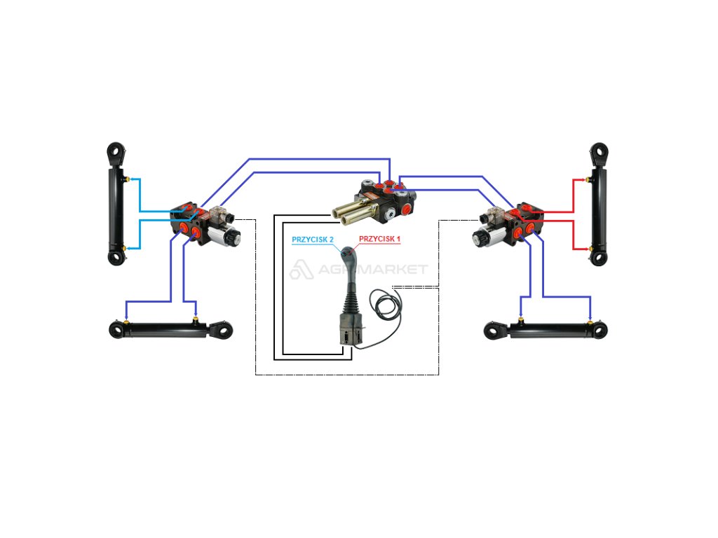 4sekce hydraulick sada: 40L rozvaděč + dva 6/2 solenoidov‚ ventily + joystick se dvěma tlačítky + dva 2,5m kabely