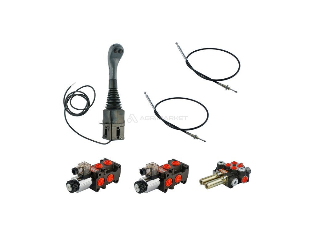 4sekce hydraulick sada 40L/min: Joystick 2 tlačítka + 2x kabely 3m + 2sek. rozvaděč 40L + 2x Solenoidově ventil