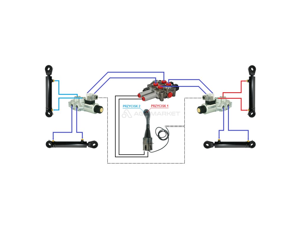 4sekce hydraulick sada: 60L rozvaděč + dva 6/2 solenoidov‚ ventily + joystick se dvěma tlačítky + dva 2,5m kabely