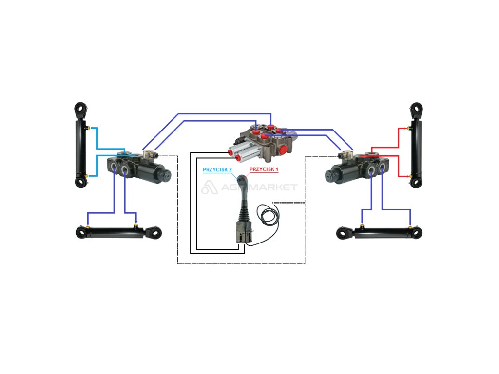 4sekce hydraulick sada: 90L rozvaděč + dva 6/2 solenoidov‚ ventily + joystick se dvěma tlačítky + dva 2,5m kabely
