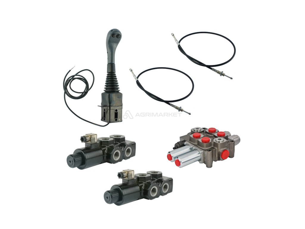 4sekce hydraulick sada: 90L rozvaděč + dva 6/2 solenoidov‚ ventily + joystick se dvěma tlačítky + dva 3m kabely