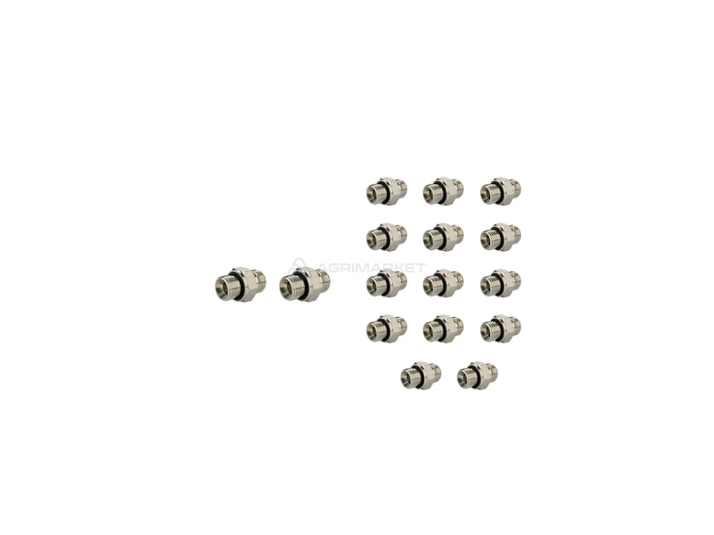 | Připojovací sada a připojení hadice: | Všechny spoje nabízené v sadě mají těsnění NBR, které zajišťuje těsné spojení s rozdělovačem. Na straně hydraulického vedení mají přípojky 24° hrdlo přizpůsobené hadicím s koncovkami DKOL, DKOL-90, DKOL-45 s typickým upínacím kuželem 24°. Spojení s hadicemi nevyžaduje dodatečné těsnění.