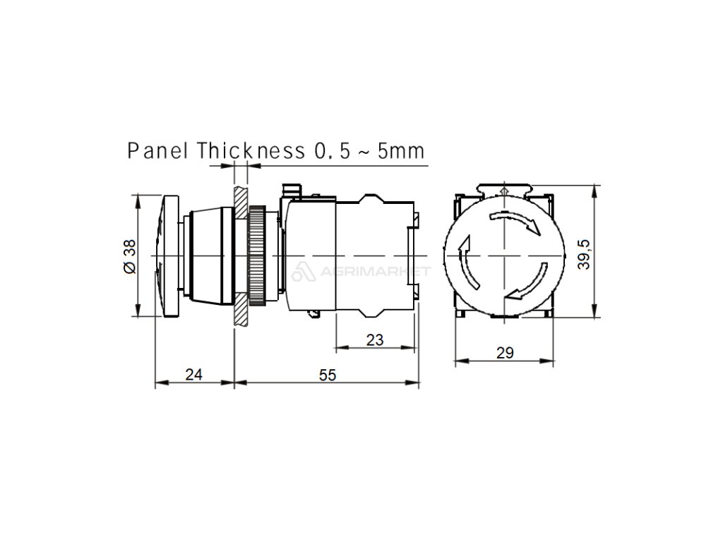 | Aplikace: | Elektrický spínač lze použít k náhlému zastavení jakéhokoli elektricky ovládaného stroje. Určeno pro montáž do otvoru Ø 22 mm. Instalace se provádí posunutím červené západky doleva, vyjmutím tlačítka, odšroubováním kroužku, prostrčením spínače otvorem pouzdra, zašroubováním kroužku, zatlačením tlačítka do základny a posunutím západky doprava. Po stisknutí tlačítka se stroj vypne. Chcete-li odemknout, otočte hřibovou hlavou doleva a poté vytáhněte nahoru. |