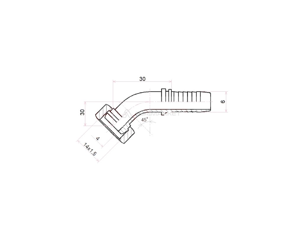 DKM-45 KULIČKOVÝ ÚHLOVÝ VLNITÝ DN6 1/2SN M14x1,5