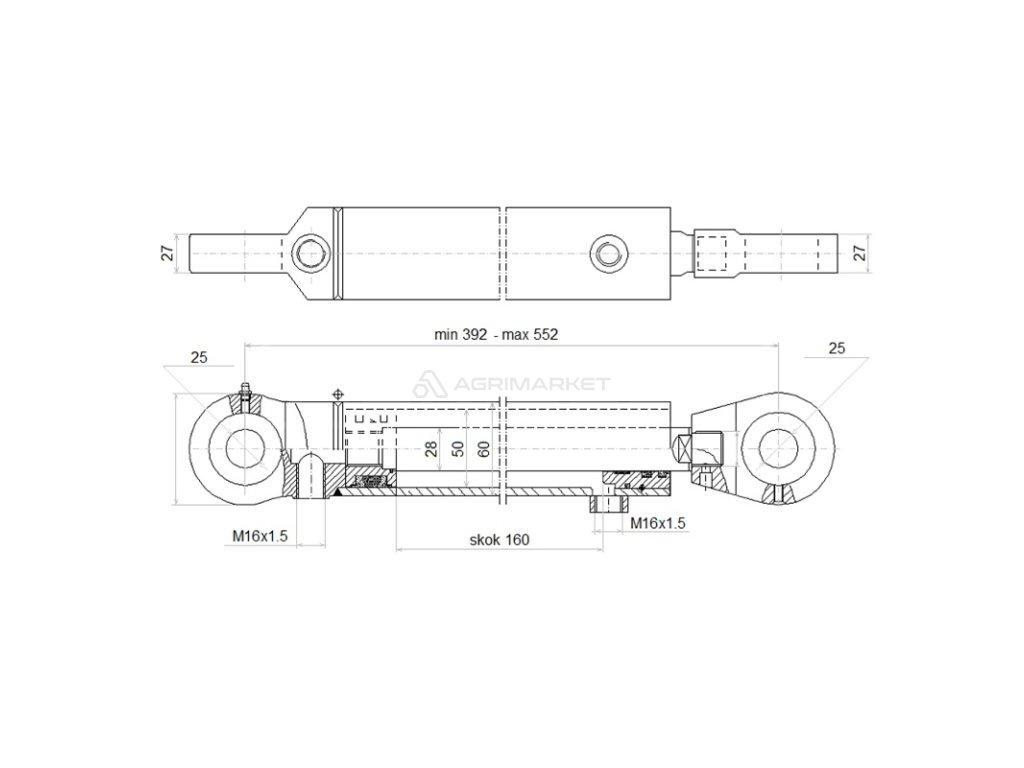 DÉLKA: 392 MM ZDVIH: 160 MM CJ2F-50/28/160 U25
