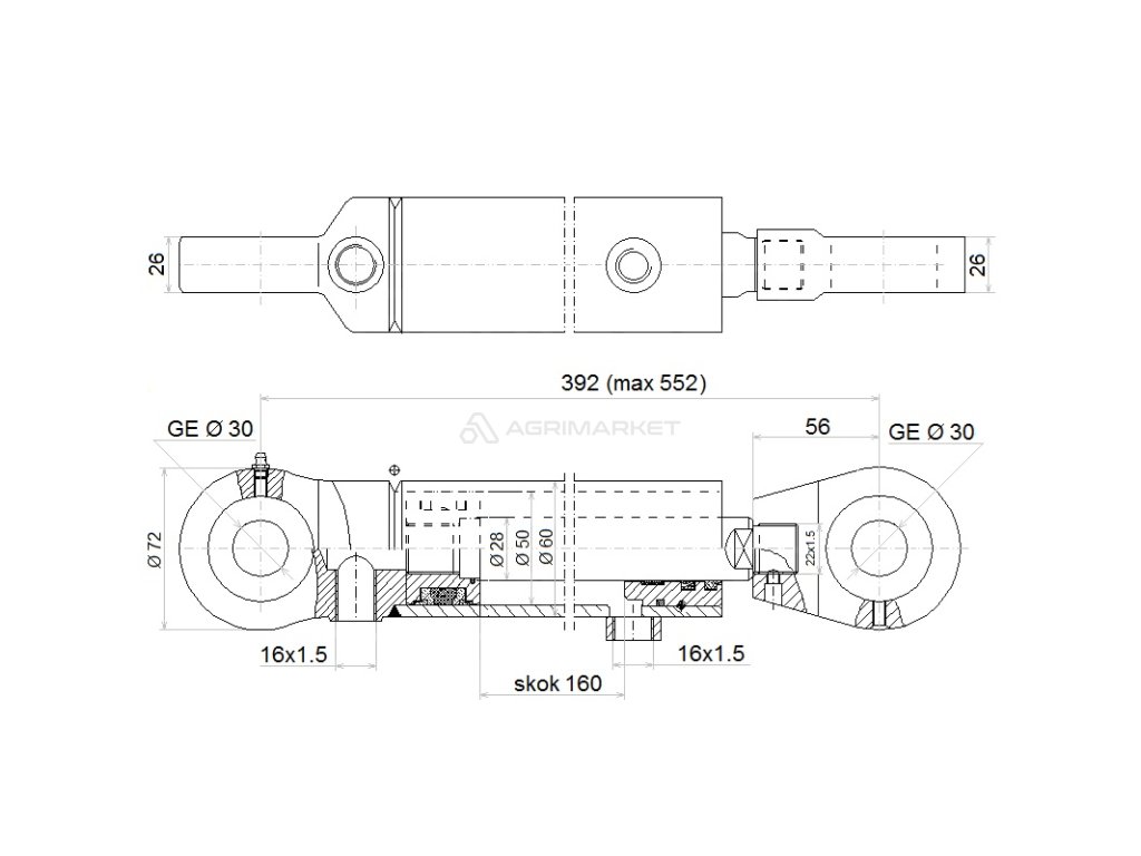 DÉLKA: 392 MM ZDVIH: 160 MM CJ2F-50/28/160 U30