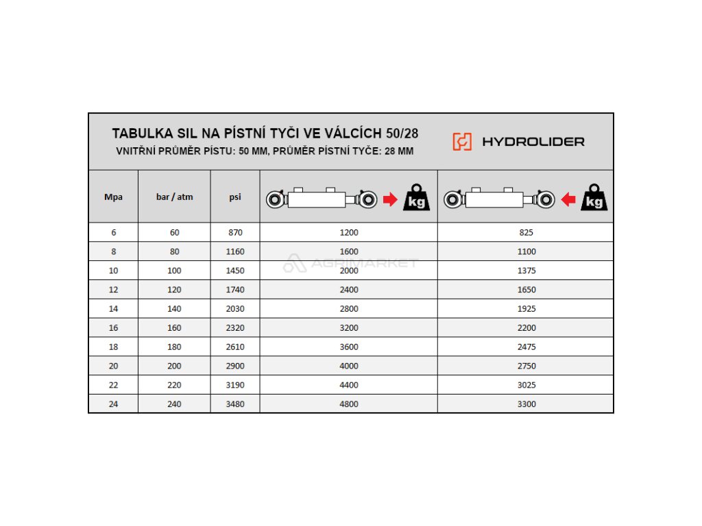 Průměr pístní tyče: 28 mm