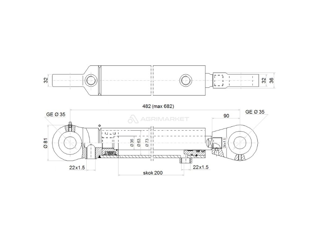 DÉLKA: 482 MM ZDVIH: 200 MM CJ2F-63/36/200 U35 TROLL