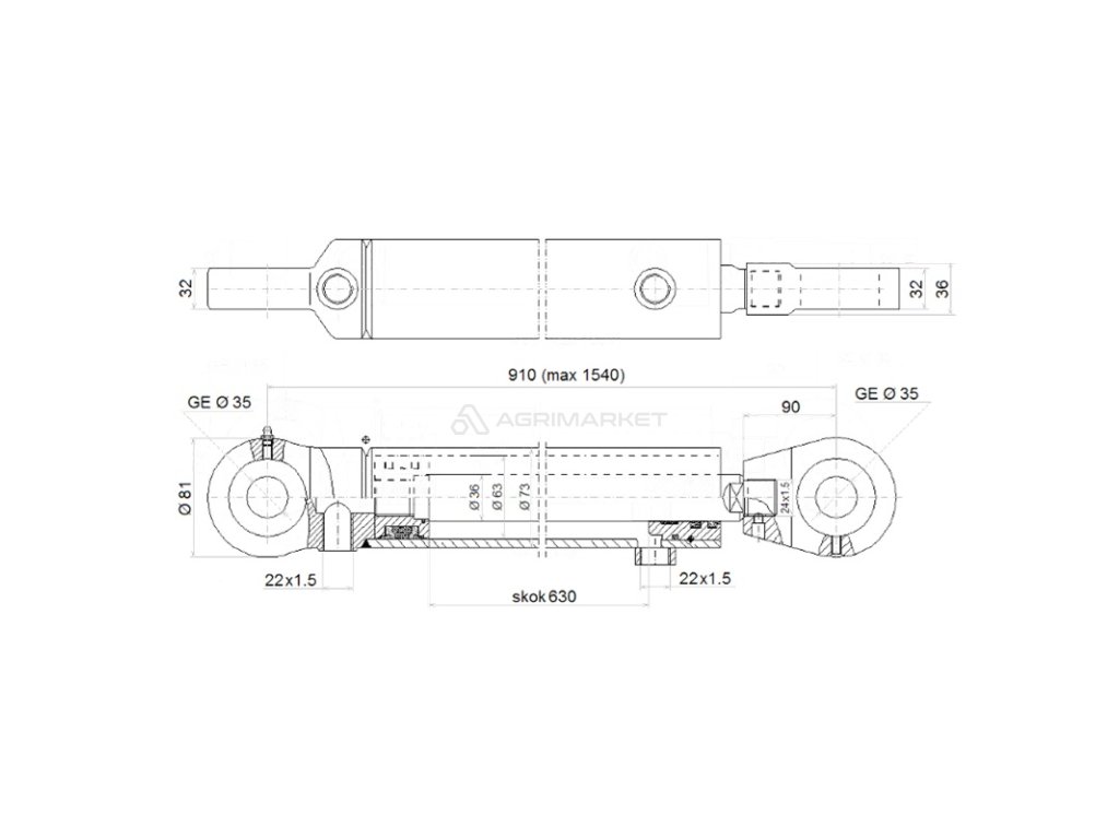 DÉLKA: 910 MM ZDVIH: 630 MM CJ2F-63/36/630 U35