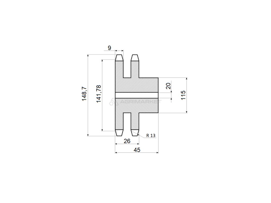 | Aplikace: | Univerzální dvojité ozubené kolo určené k přenosu síly ve strojích a zařízeních pomocí dvou hnacích řetězů. Tento typ převodu pohonu se vyznačuje velmi vysokou pevností a odolností. |
