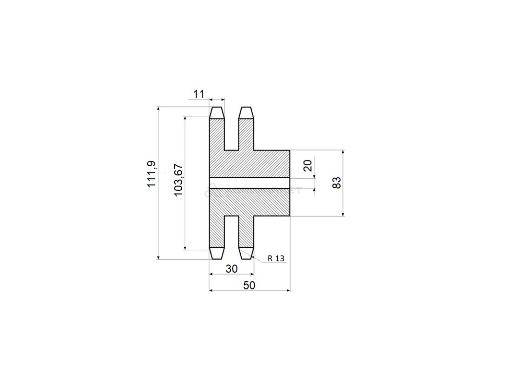 | Aplikace: | Univerzální dvojité ozubené kolo určené k přenosu síly ve strojích a zařízeních pomocí dvou hnacích řetězů. Tento typ převodu pohonu se vyznačuje velmi vysokou pevností a odolností. |