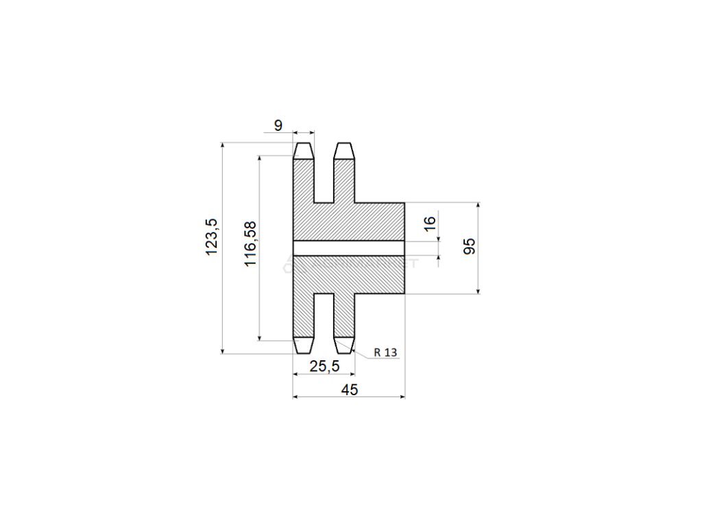| Aplikace: | Univerzální dvojité ozubené kolo určené k přenosu síly ve strojích a zařízeních pomocí dvou hnacích řetězů. Tento typ převodu pohonu se vyznačuje velmi vysokou pevností a odolností. |