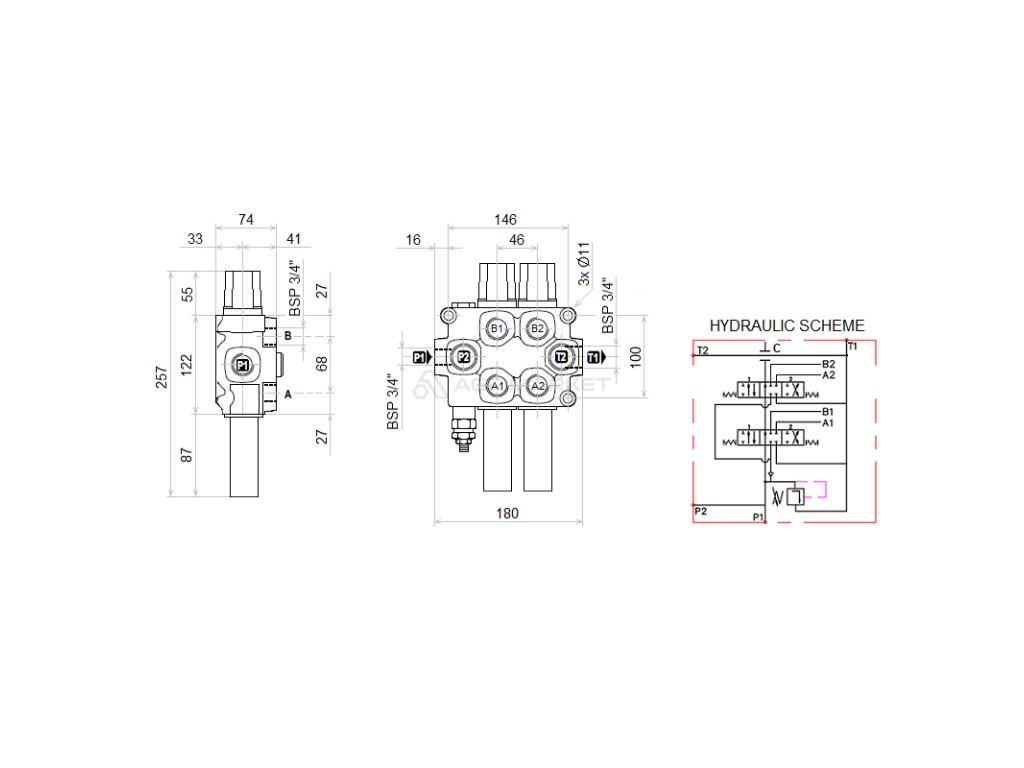 Hydraulick sada 2sekce joystick 1 tlačítko + 2x kabel 1m + 2sekce rozvaděč 120l