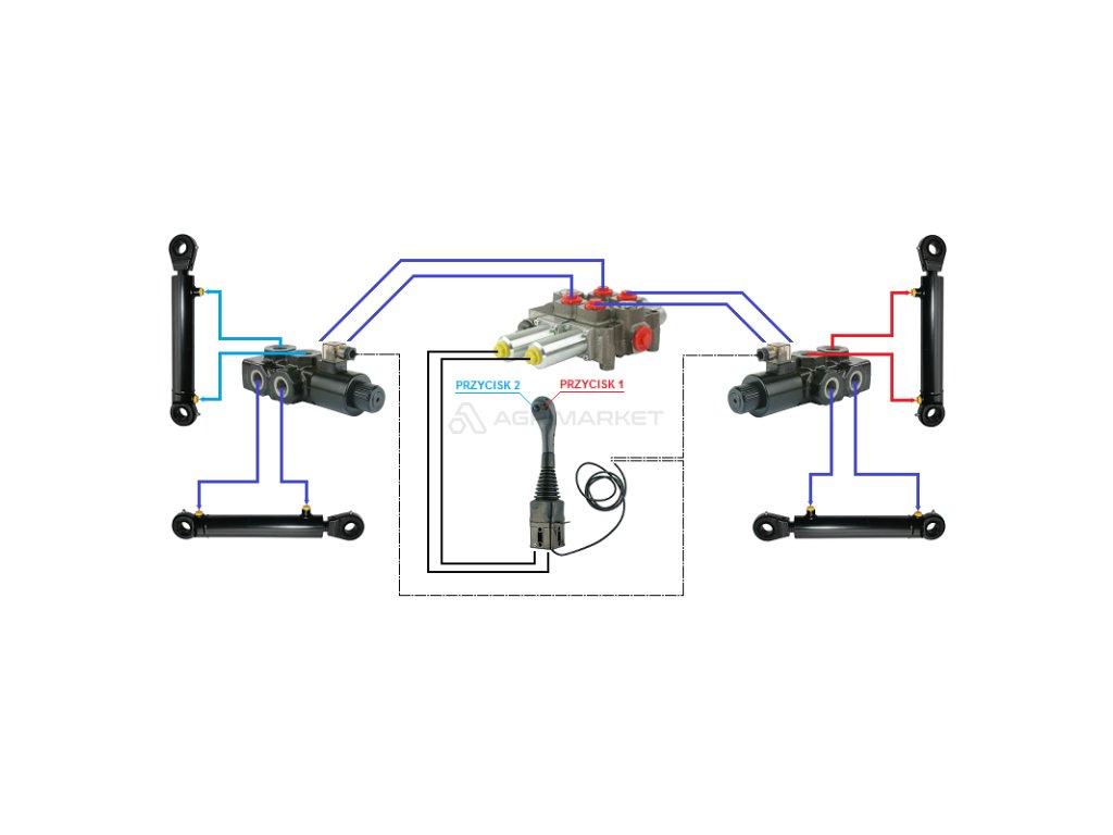 Hydraulick sada 4sekce joystick 2 tlačítka + 2x kabel 2,5m + 2-sek. rozvaděč 120l + 2x elektromagnetickě ventil 6/2 pro 3 a 4 sekce (drap k, krokoděl)