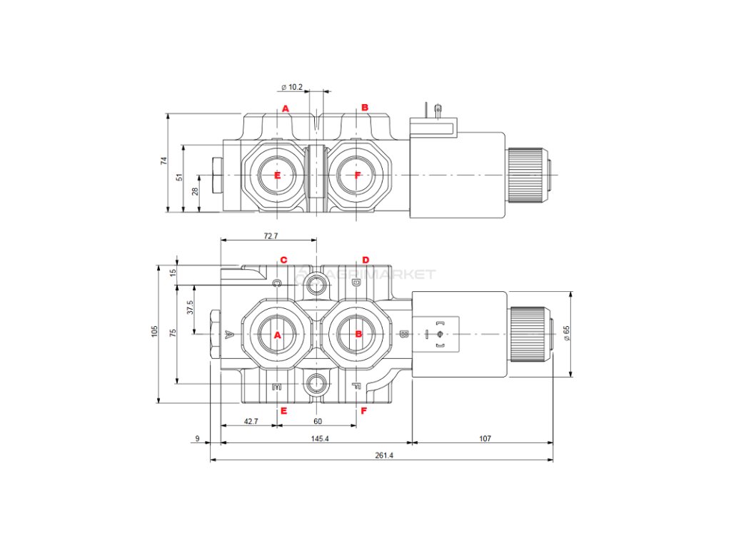 Hydraulick sada 4sekce joystick 2 tlačítka + 2x 1m kabel + 2sek. rozvaděč 120l + 2x elektromagnetickě ventil 6/2 pro 3 a 4 sekce (drap k, krokoděl)