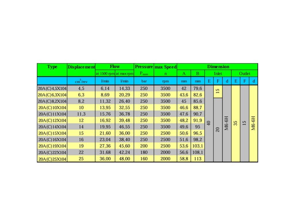 Hydraulické zubové čerpadlo, skupina 2, levé otáčení, objem: 14 cm3/ot., výkon (1500 ot./min): 19,95 l/min