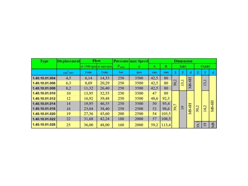 Hydraulické zubové čerpadlo, skupina 2, pravotočivé, objem: 10 cm3/ot., výkon (1500 ot./min): 13,95 l/min