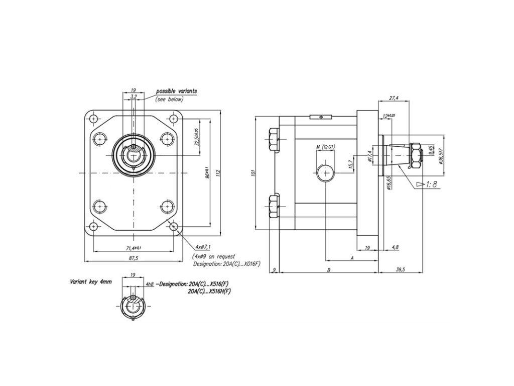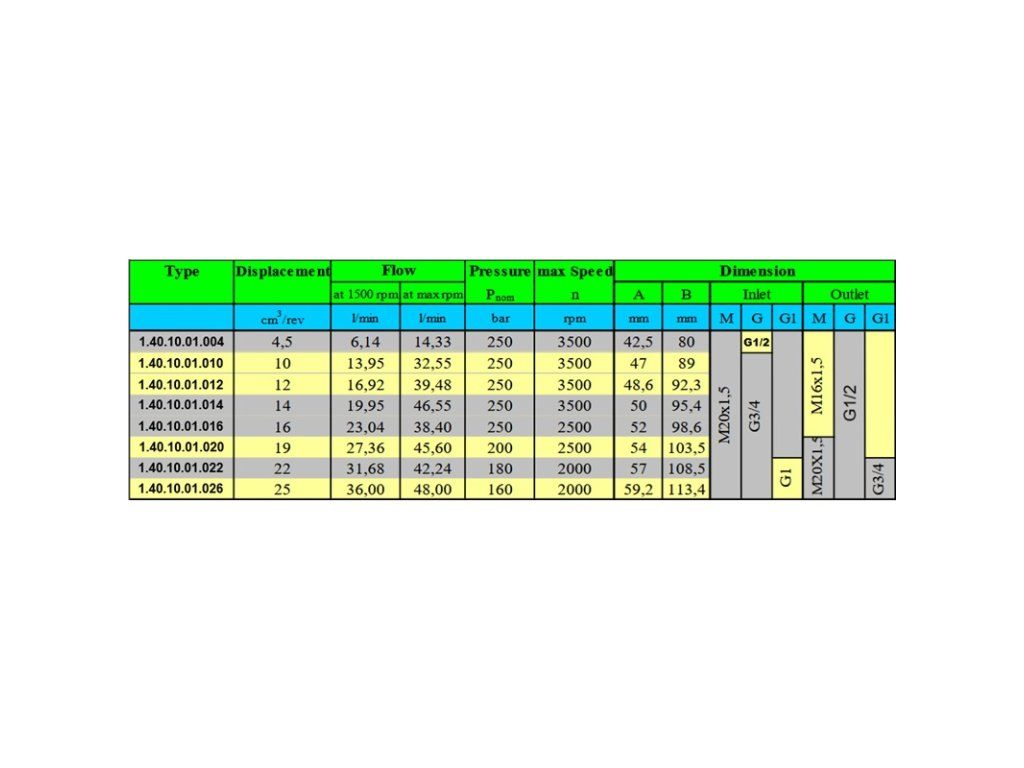 Hydraulické zubové čerpadlo, skupina 2, pravotočivé, objem: 19 cm3/ot., výkon (1500 ot./min): 27,36 l/min