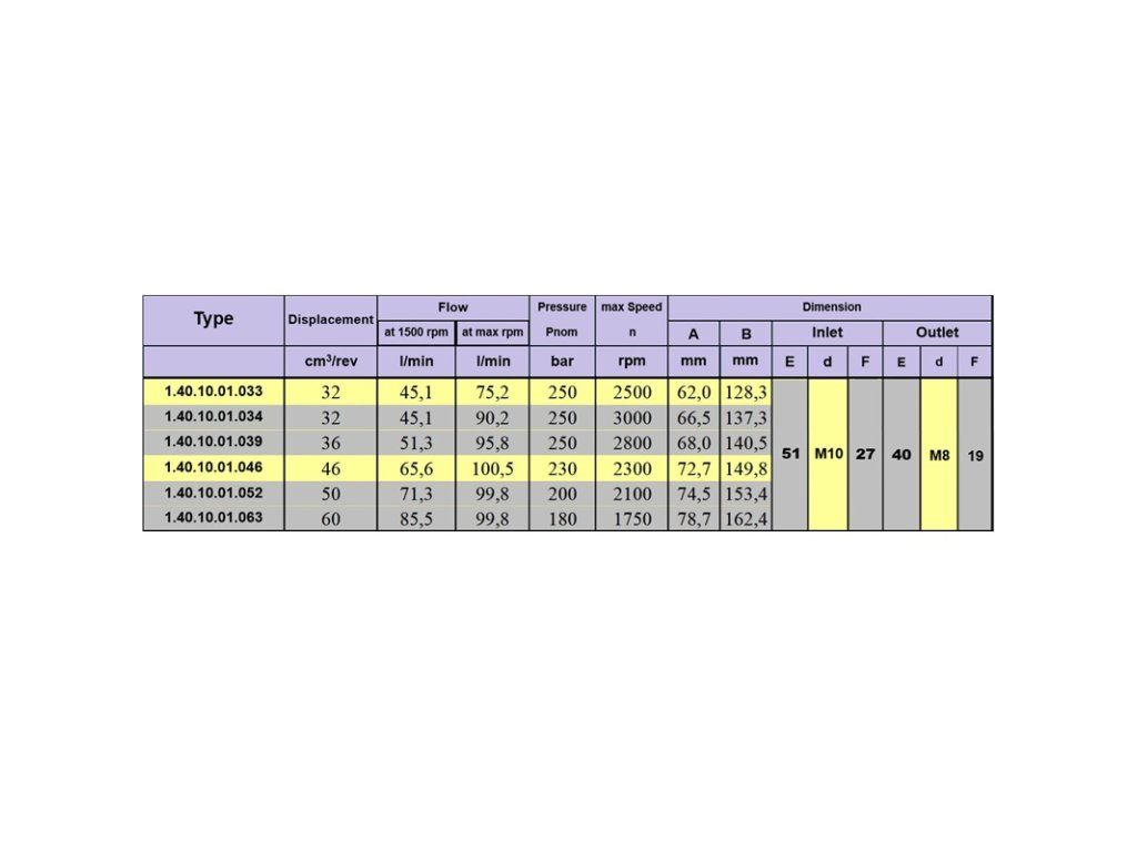 Hydraulické zubové čerpadlo, skupina 3, pravotočivé, objem: 32 cm3/ot., objem (1500 ot./min): 45,1 l/min