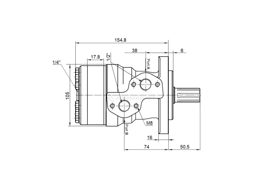 HYDROMOTOR GEROLLER TYPU BMR 100 NASÁKAVOST: 100cc/ot ; VÁLEČEK: 6-frézovacím hřídelem ; OBRAT: 600ot./min | |