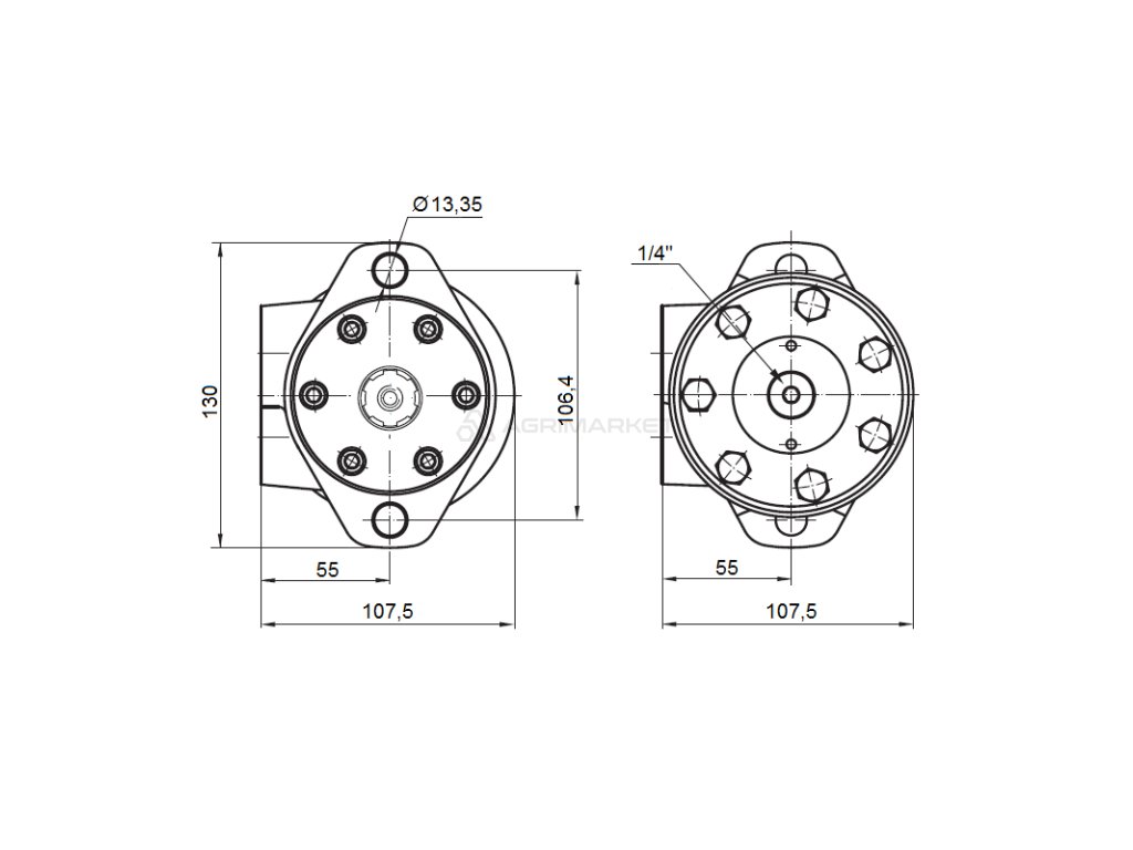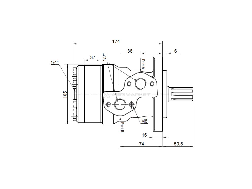 HYDROMOTOR GEROLLER TYPU BMR 200 NASÁKAVOST: 200cc/ot ; VÁLEČEK: 6-frézovacím hřídelem ; OBRAT: 300ot./min | |