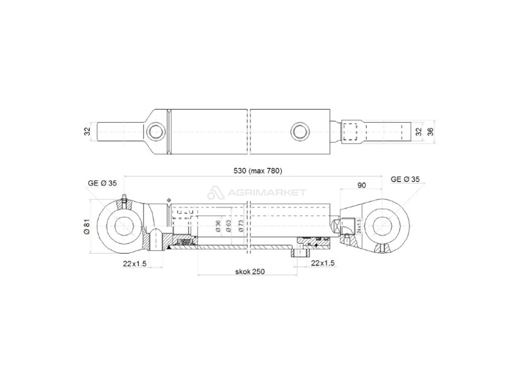DÉLKA: 530 MM ZDVIH: 250 MM CJ2F-63/36/250 U35