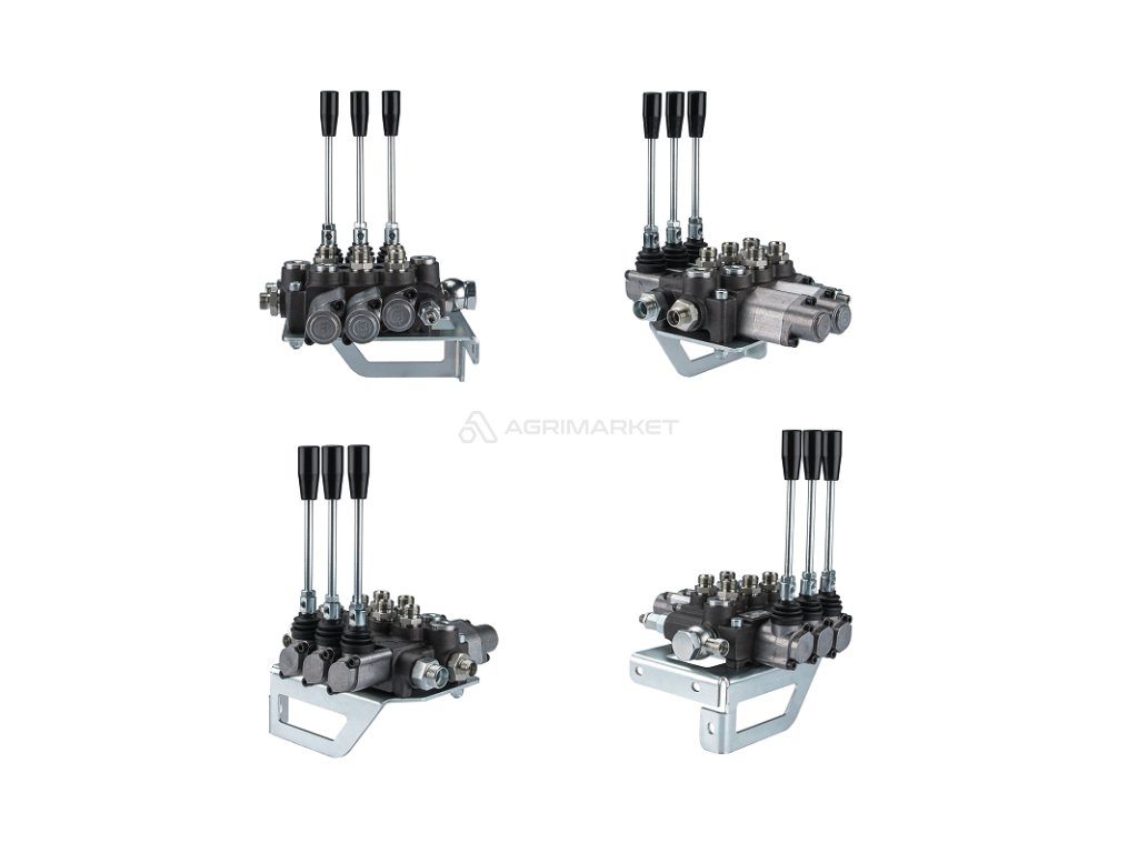 | Distributor: | Externí 3-sekční hydraulický rozvaděč se dvěma plovoucími sekcemi a jednou běžnou sekcí. Plovoucí sekce určená k ovládání továrního zvedacího válce. Druhá plovoucí sekce a běžná sekce jsou určeny k ovládání zvedání výložníku a vyrovnávání lopaty u čelního nakladače TUR. Sada obsahuje držák pro montáž rozdělovače na blatník na pravé straně řidiče. |