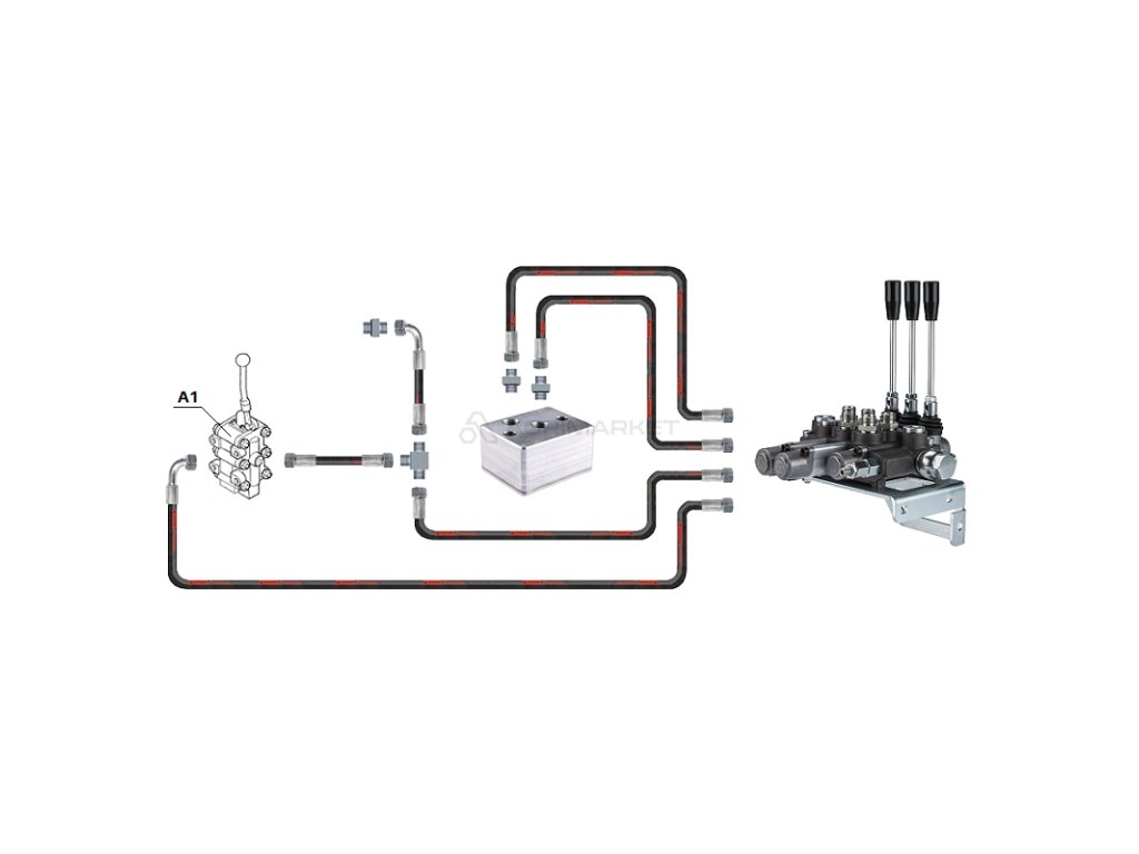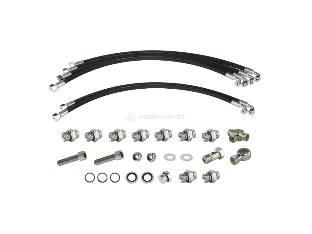 | Kabely a konektory: | Sada obsahuje všechny potřebné hadice a hydraulické konektory nezbytné pro připojení a správnou funkci nového rozdělovače, zadního táhel a továrního rozdělovače a zadních zásuvek. |
