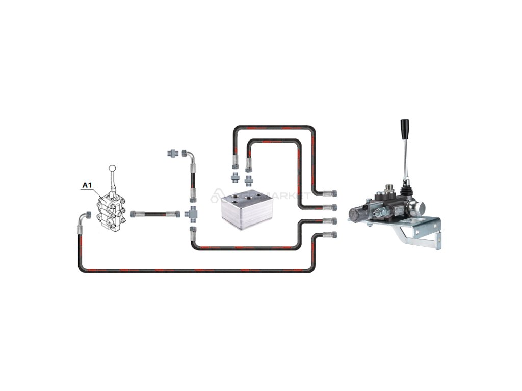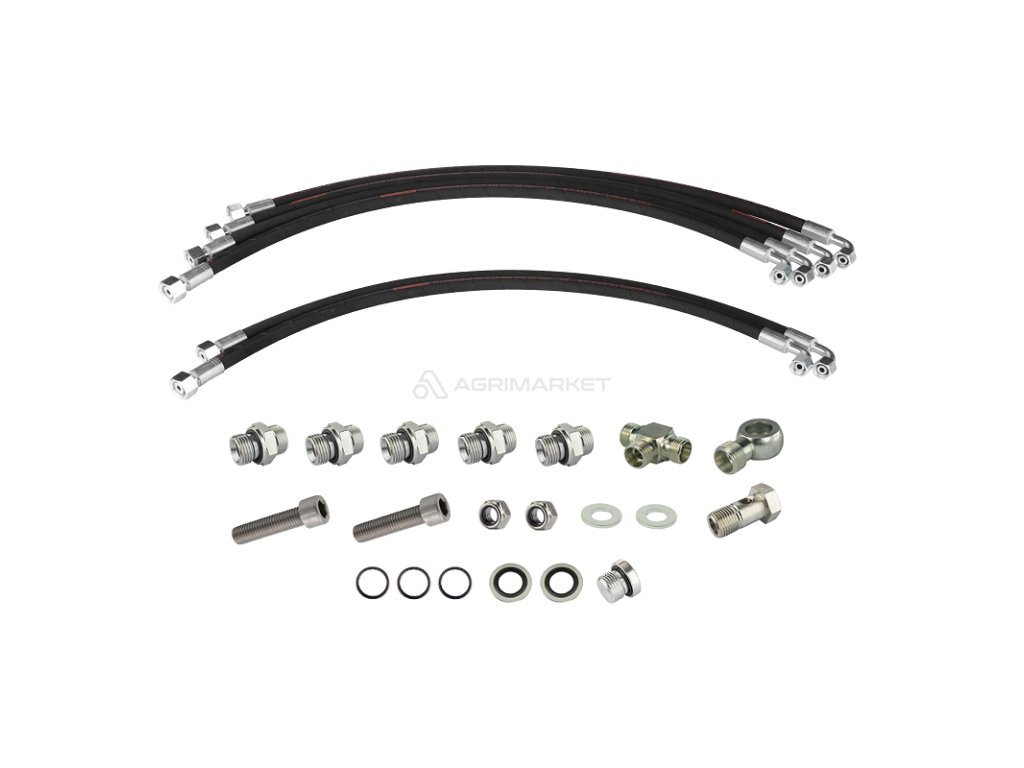 | Hydraulické hadice a upevňovací prvky: | Sada obsahuje všechna potřebná hydraulická vedení a konektory potřebné pro připojení a správnou funkci nového rozdělovače a zadního táhel, továrního rozdělovače a zadních zásuvek. |
